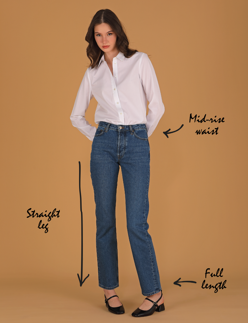 - A straight and moderately wide leg that gives a relaxed sophisticated look